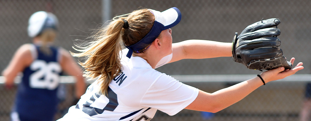 • softball player catching ball